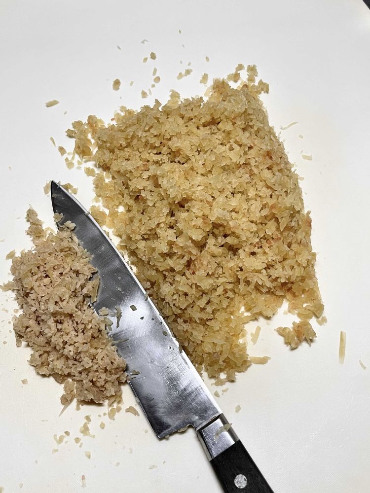 ➍➎ 一緒に漬けておいた生姜と塩昆布も一緒に刻んで青のりと胡麻とあと、鷹の爪も細かく刻んで、