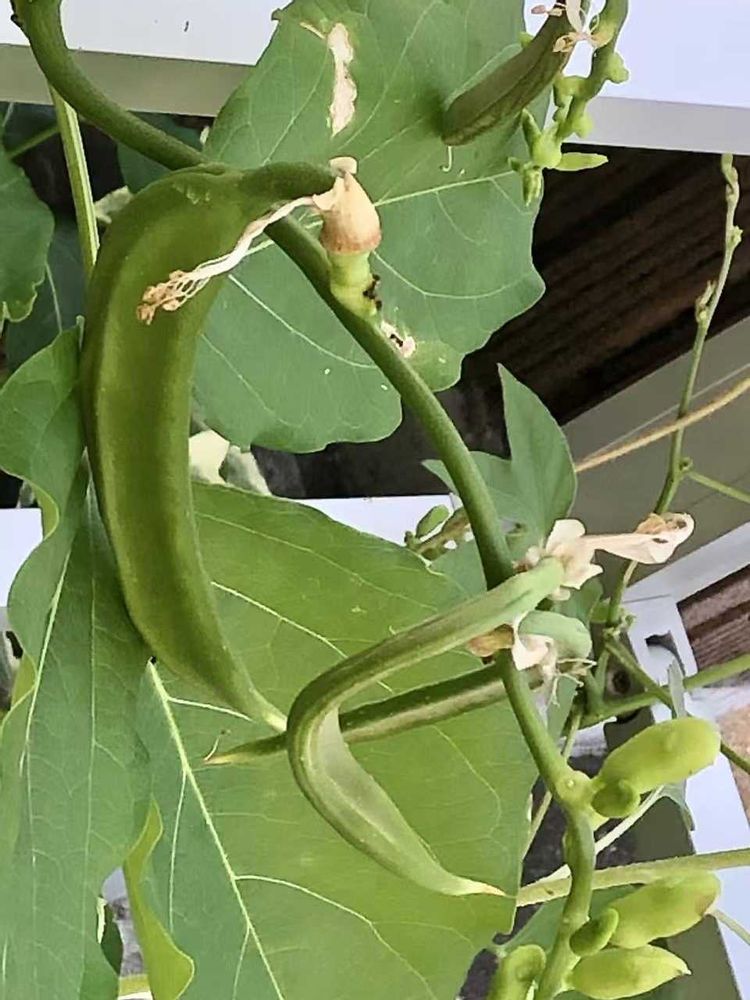 1234厳しい暑さに負けない白刀豆ナタマメ、ジャックと豆の木🫛5枚目:1日に2、3回水やりしても枯れてしまった糸瓜ヘチマ、農家の方が大変だなぁと思います😓