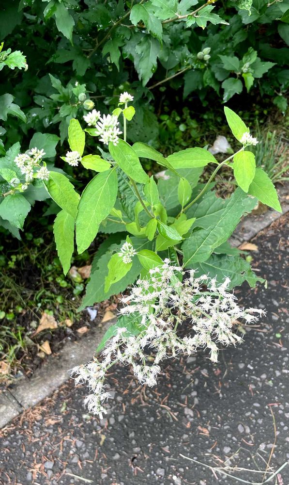 2年前ムクゲの根元に生えてきたヒヨドリバナ、すっかり定着したようです。😊