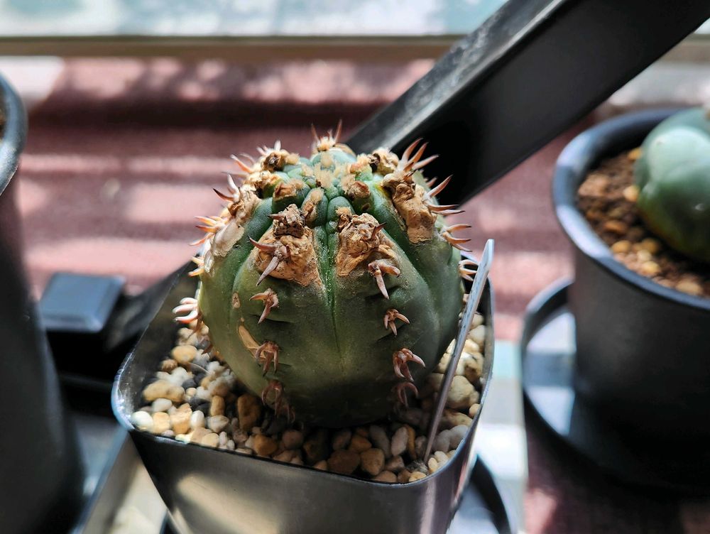 この子(普通の天平丸含む)は育てるのが難しいと🌵界では言われているらしく、こうして病気になったり、茶膜が出来てしまったり、直ぐスネル🌵さんなんです😅