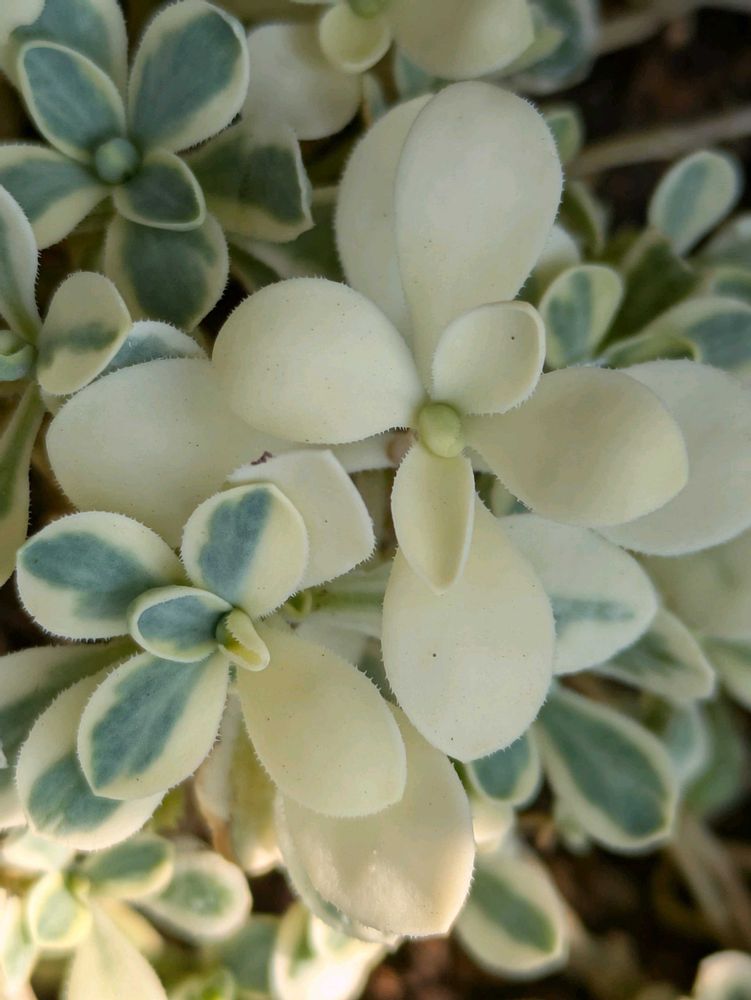 シレネさん🤩真っ白な葉が、まるでお花みたいにカワイイですね💓周りの葉っぱから栄養もらって頑張って〜🌿✨🌿