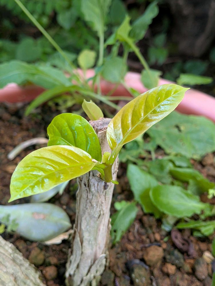 冬の真っ最中に妻に外に出されて死んだと思っていたコーヒーが復活しました。かなり切り戻していたので、今年は玄関に入れて冬越しを狙います。今度は殺されそうにならないように、気をつけます。予期していなかったいきなり台風で昨日はプロテアの花芽が黒くなっていましたが、昨日の昼からの晴天で今日は少し色が戻りました。復活しますように🙏