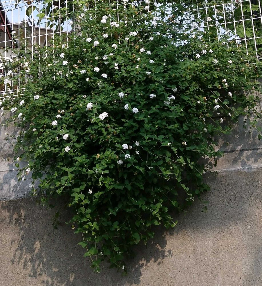 白の蔓性ランタナが気付かないうちに道路側にこんもりと…