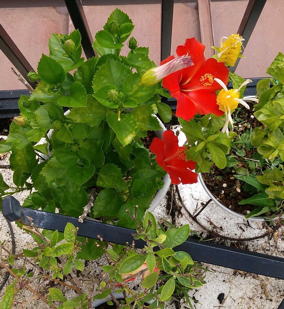 赤いハイビスカスと黄色と白のコントラストが可愛いパキスタキスを先ほど撮影🥳