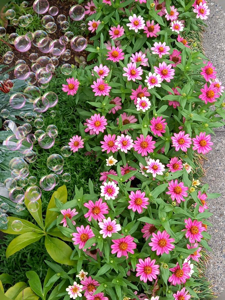 種から育てこんなに咲いてくれてます🤗鉢も地植えも、摘心しなくてこんもりです。嬉しい🥰