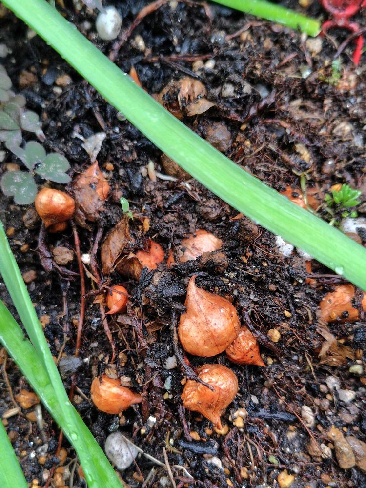 3枚目📷、水やりしていたら、コロコロ動く物があり、よく見たら球根。