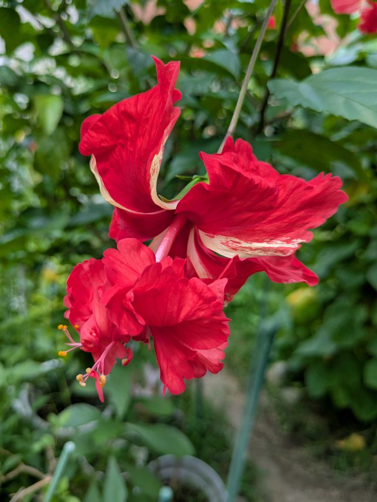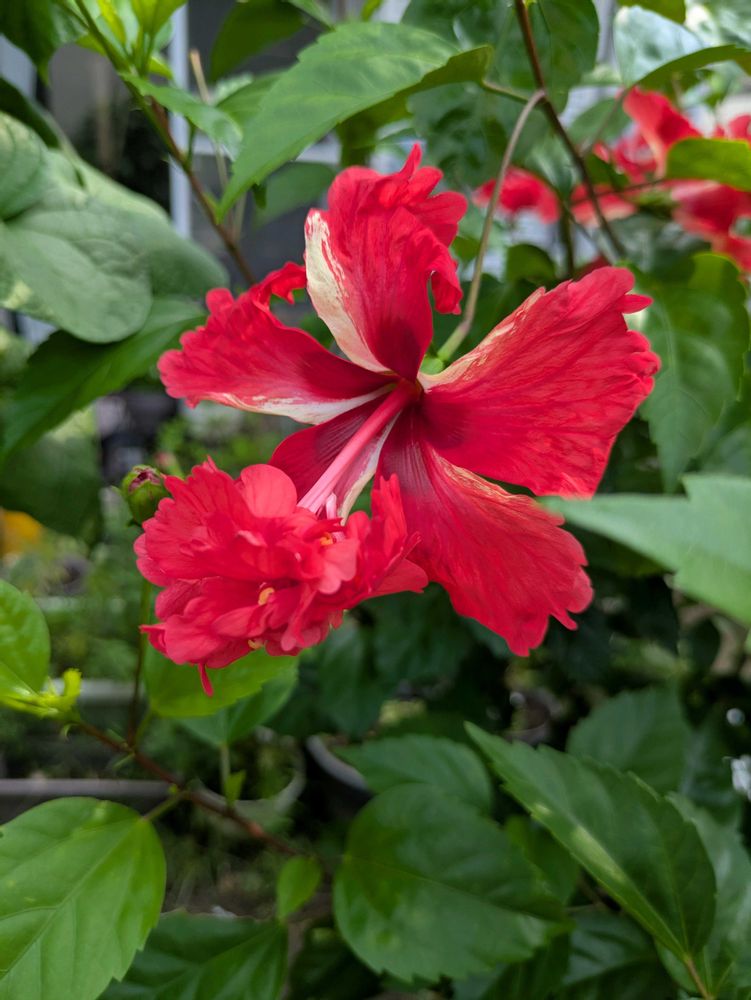 ハイビスカス レッドフラミンゴ 今日は、固まって咲いています。