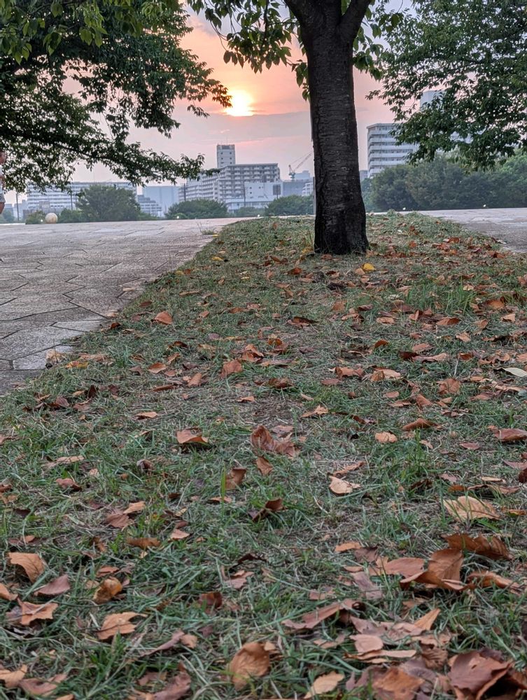 落ち葉あるけど、真夏の夕焼けだよ〜😅
