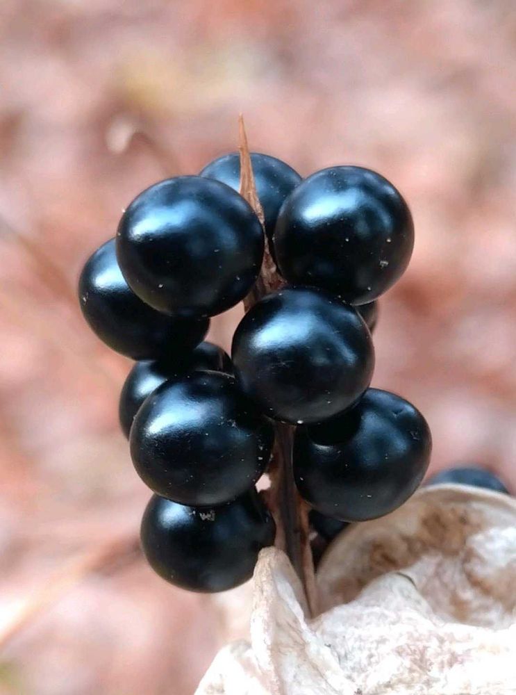 アヤメ科アヤメ属の多年草。日当たりのよい山地の草原に生え、昔から観賞用に栽培もされる。葉は長さ30~50㎝。花期は8~9月。一日花で、次々と開く。花茎は上部で枝を分けて数個の苞をつけ、中から2~3個の花を出す。6枚の花弁は淡い橙色で、内面に暗赤色の斑点がある。果実は蒴果。楕円形で長さ3㎝ほど。成熟すると裂開して果皮がめくれ黒い種子が剥き出しになる。種子は径5㎜ほどの球形で黒く光沢がある。これを烏の羽の色に見立て『烏羽玉(うばたま)』『射干玉(ぬばたま)』と呼ぶ。その漆黒さはあまりにも黒いので、古来より『黒』『夜』『髪』などにかかる枕詞として使われる。園芸上、草丈が低く、葉も花被片も幅広く、花が密につくダルマヒオウギと総称される系統がよく知られ、よく栽培される。