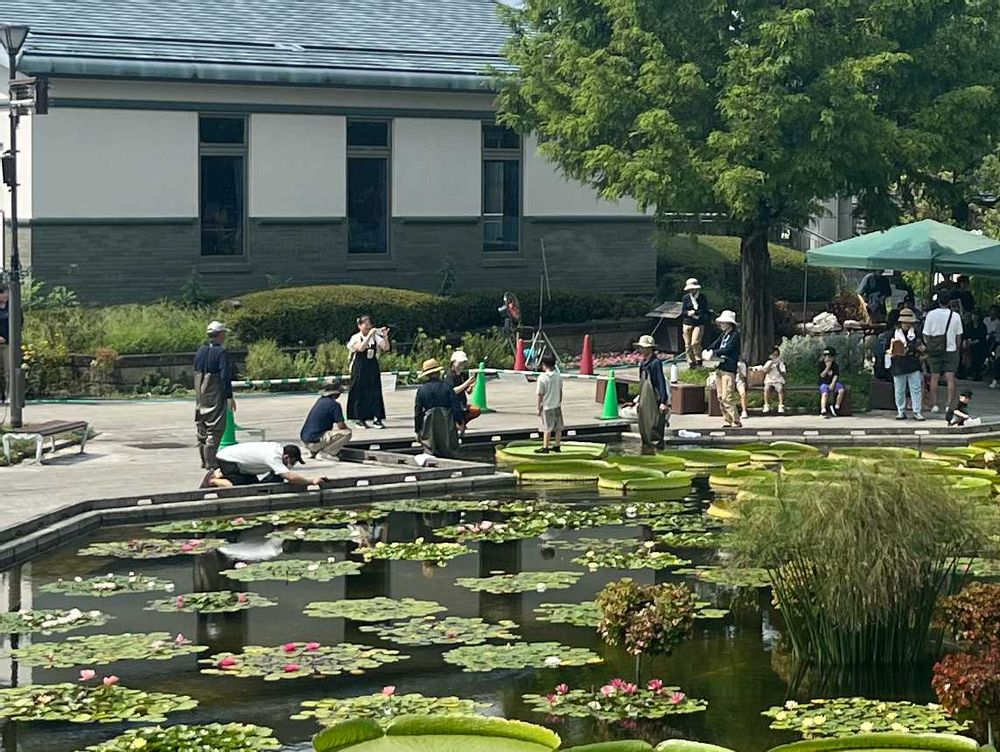 お子さんがハスの葉の上にのれるイベントをやってました。夏休みの思い出になるんだろうなぁ。