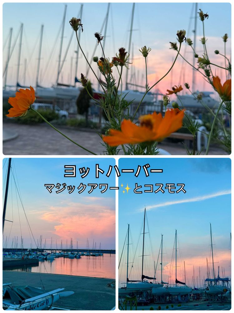 休みの日に立ち寄ったヨットハーバー♡夕暮れ時🧡キレイな空と海とコスモス✨