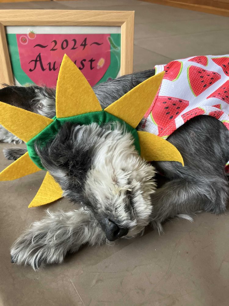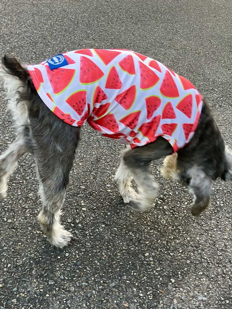 スイカ🍉柄シャツは、水で濡らして絞って着せるやつ☝️散歩してる間は冷たいと思うよ~多分😅