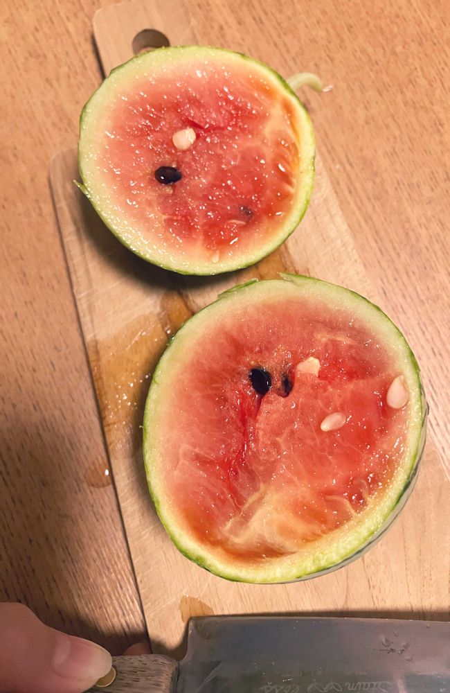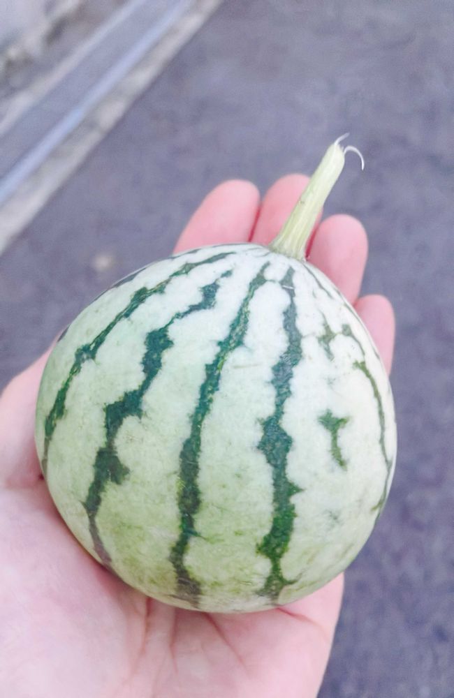 初収穫のスイカは手のひらサイズ🍉🫲