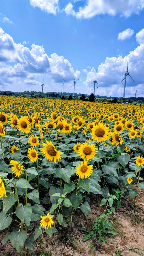 広大な土地に辺り一面ひまわりの花、そして風車と青空が広がってとても素敵な光景でした🥰