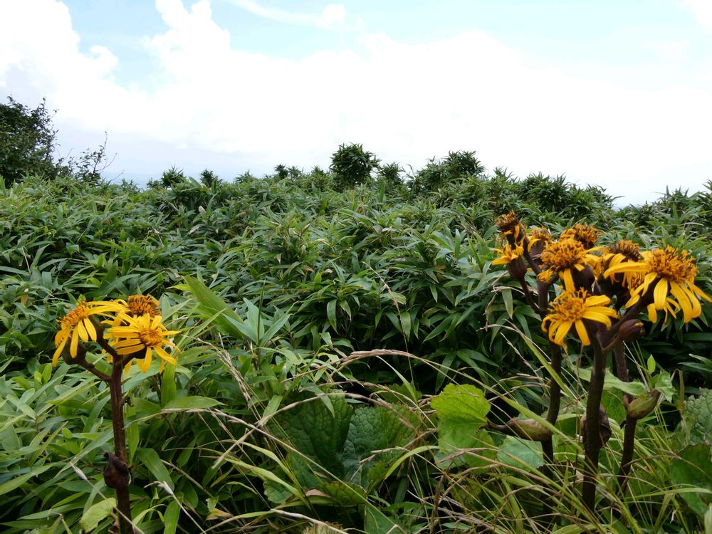 花が少ない山頂でひときわ目立ってたくさん咲いていたマルバタケブキ🌼🌼🌼