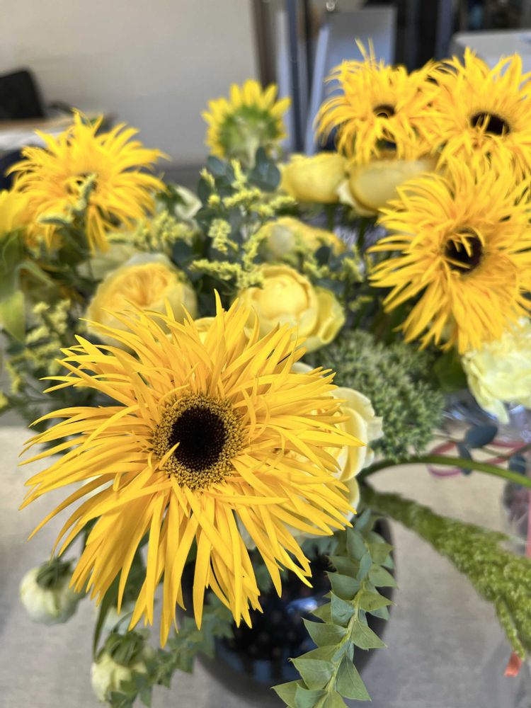 ①会社の事務所のカウンターに可愛いひまわりが花瓶に💕8/21