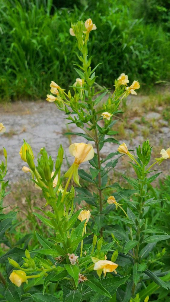 荒れ地にメマツヨイグサの花が咲いてます✨ 黄色でついつい見てしまう( ´∀`)