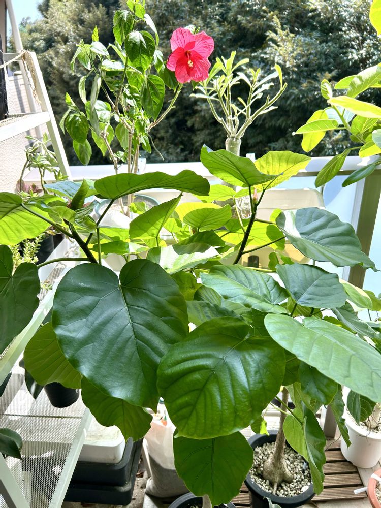 今日のハイビスカス🌺ベランダチーム😊あまりの暑さに萎れ気味です〜