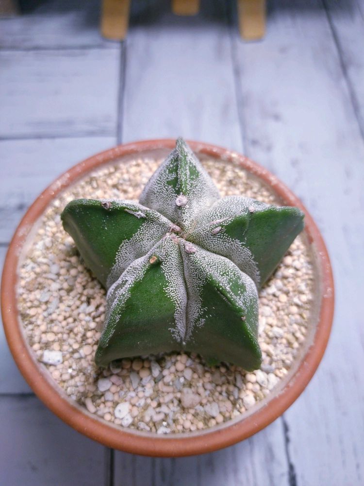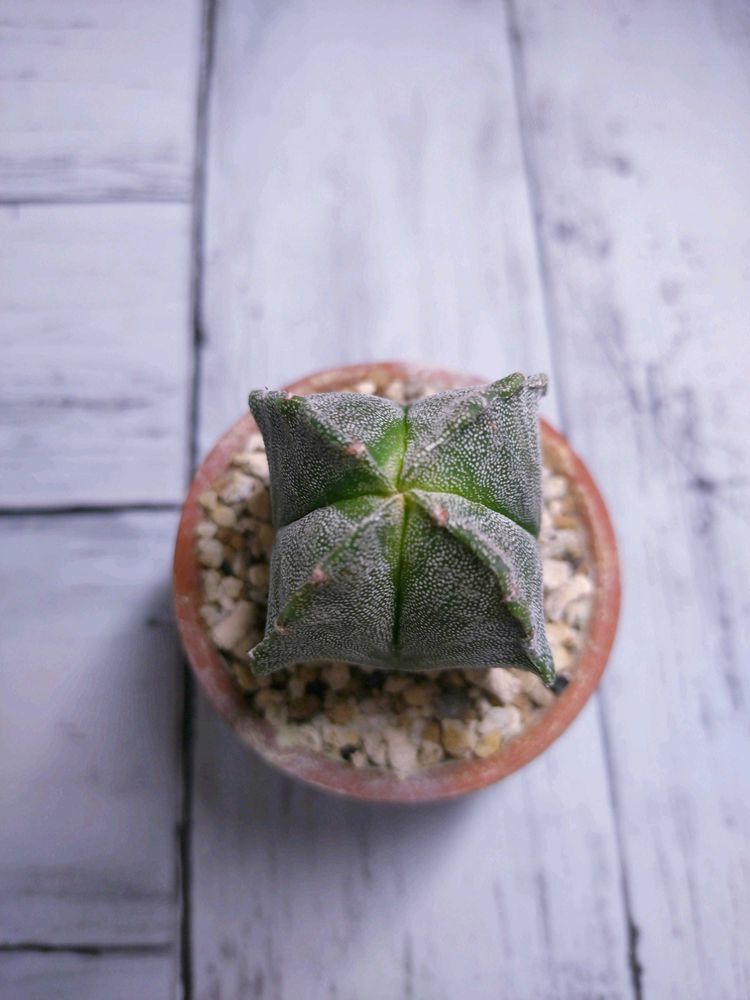 ①今日、アストロフィツム ランポーストロンギの五角形を購入。元々四角形のは育ててたのですが、定番の五角形を見かけて衝動買い😞