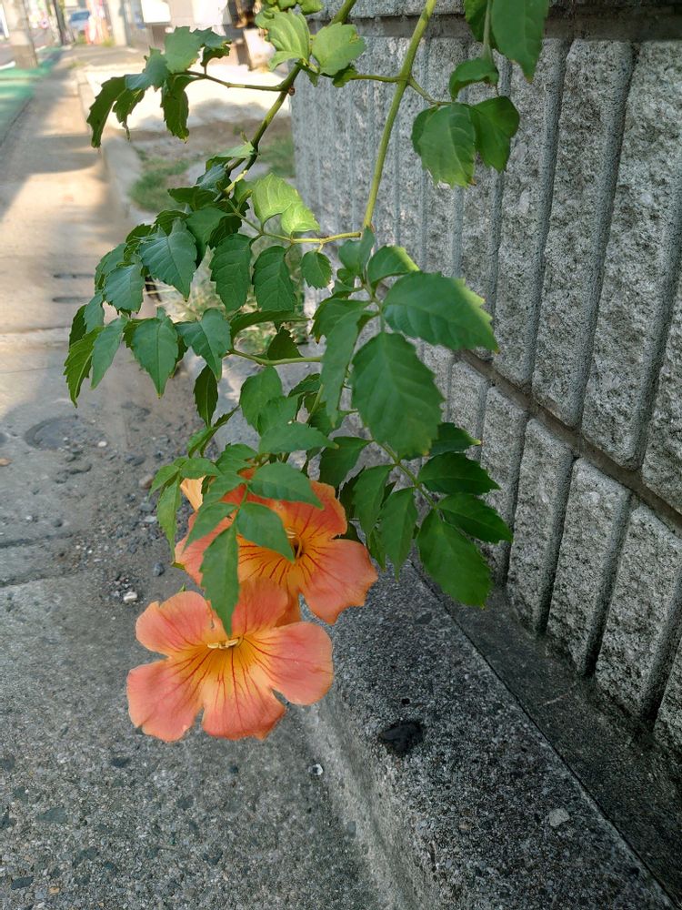 4️⃣ノウゼンカズラ🧡よそのお宅から道路の地面スレスレで咲いていました🧡😊