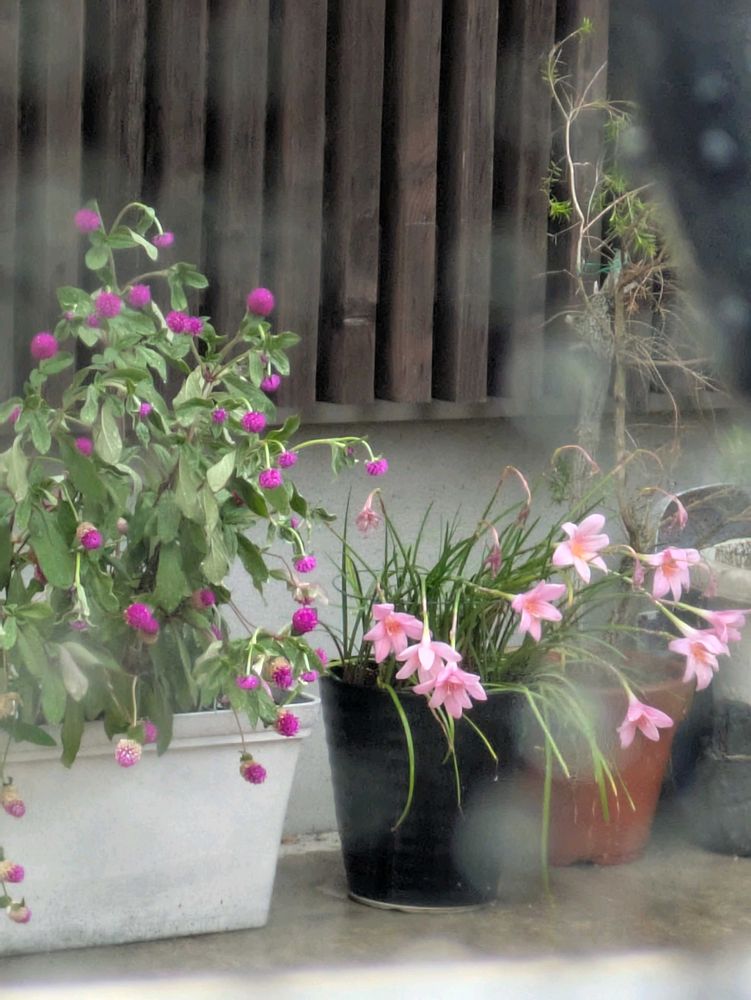 千日紅とゼフィランサス サフランモドキは♪フフフッフフールルフッフーウー