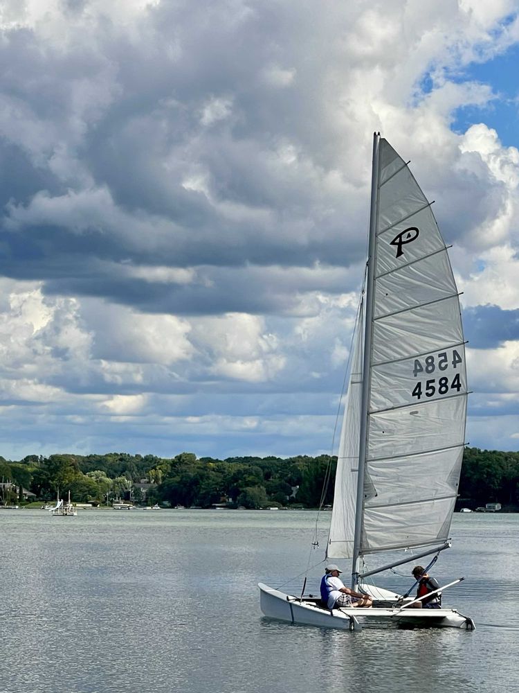 隣人のカタマラン(船)の修理を手伝ってそのまま湖に出て行ってしまいました