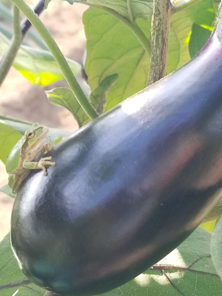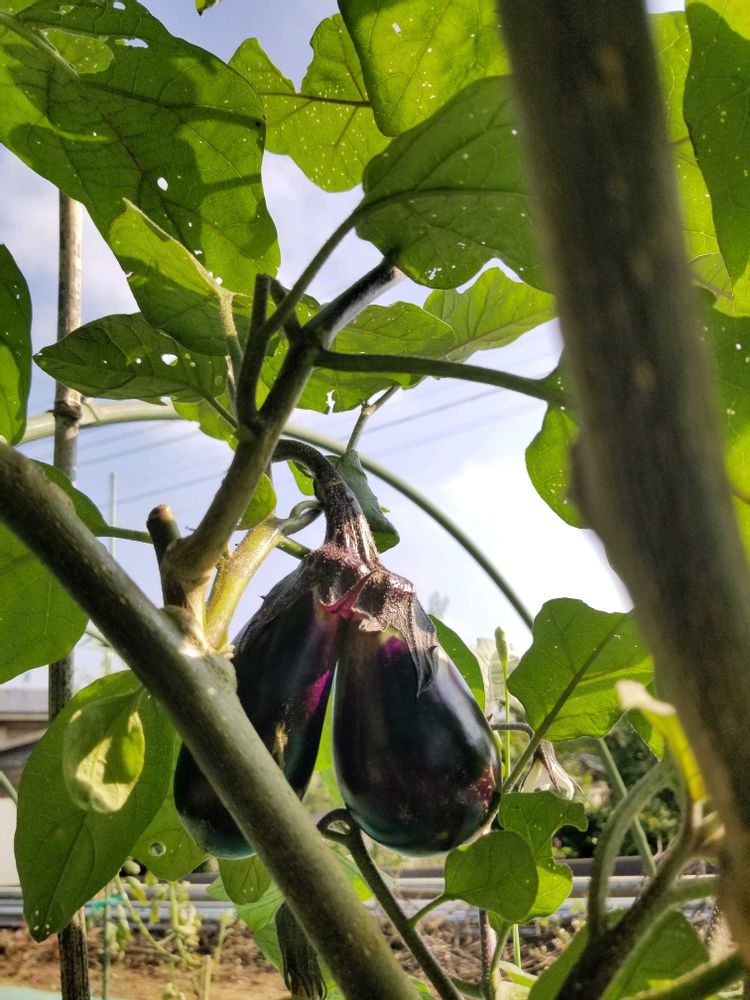 茄子🍆ちゃんも二人で、栄養を分け合ってニコニコですね〜♬