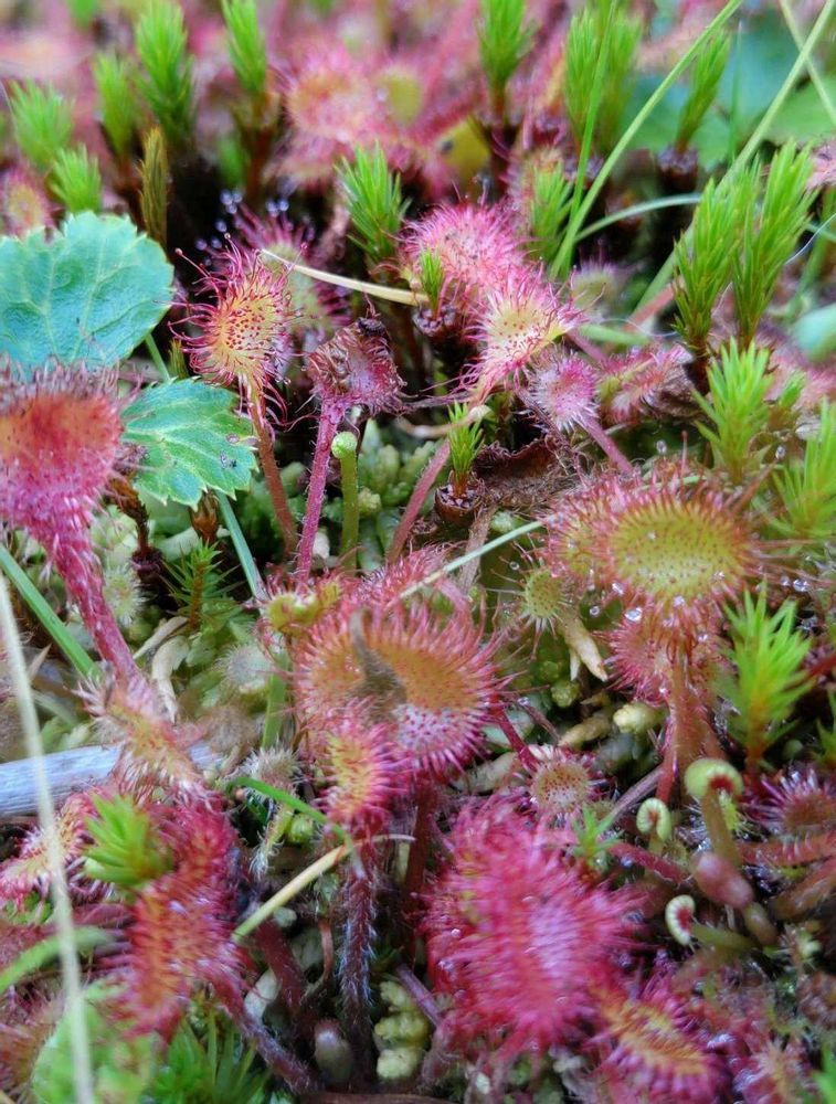 食虫植物の1種で葉にある粘毛から粘液を分泌して虫を捕獲する。