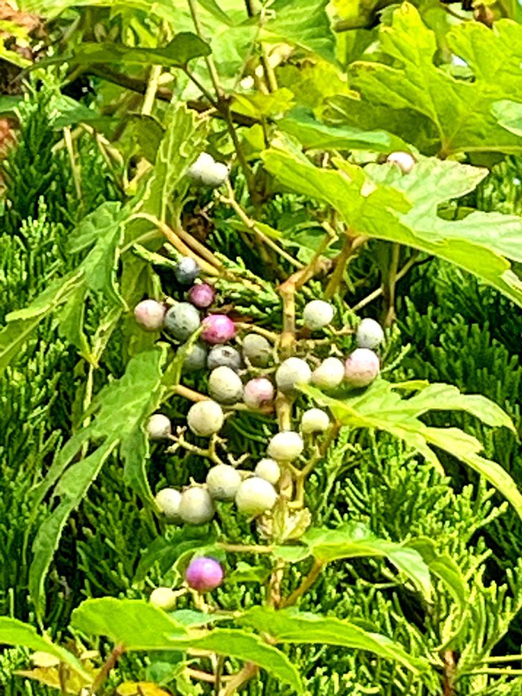 ノブドウ,通り道のお宅の生垣に,昨日、美術館に行く途中での投稿画像