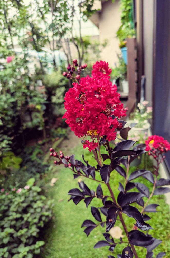 小さな庭,サルスベリ ブラックパール,赤い花の投稿画像