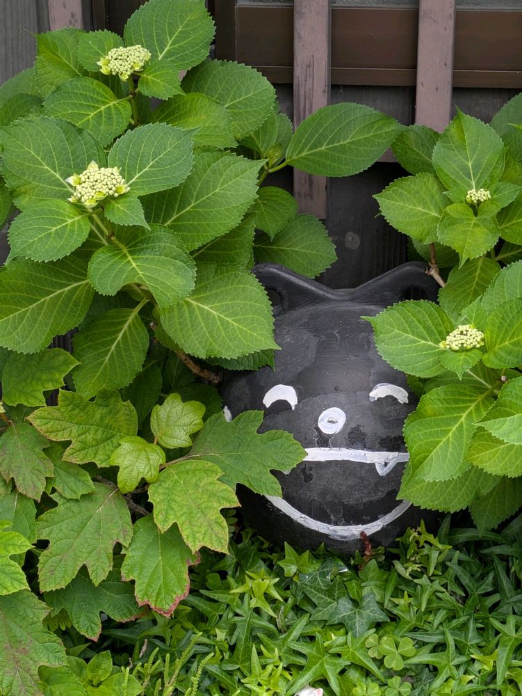 お出かけ先で、紫陽花の株の中に気配を感じたの。