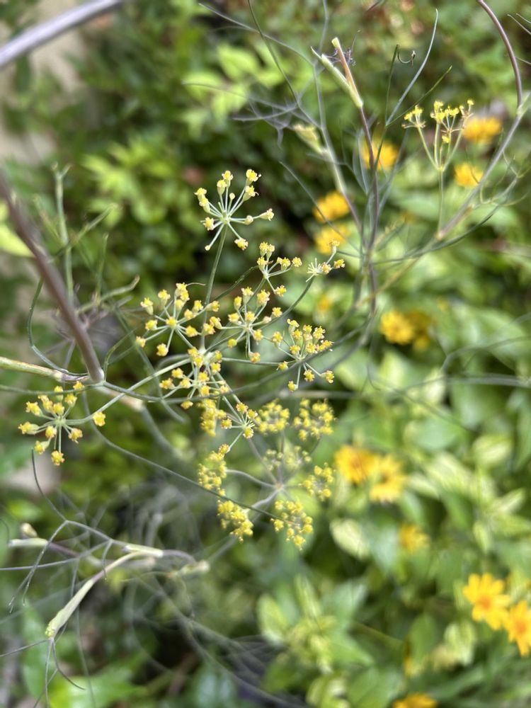 その上に倒れ混んだブロンズフェンネルの花🌼