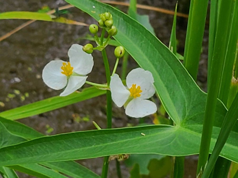 青々とした稲田をのんびり眺めていたら花茎を伸ばしてオモダカ(面高)の白い3弁花を見つけた😊
