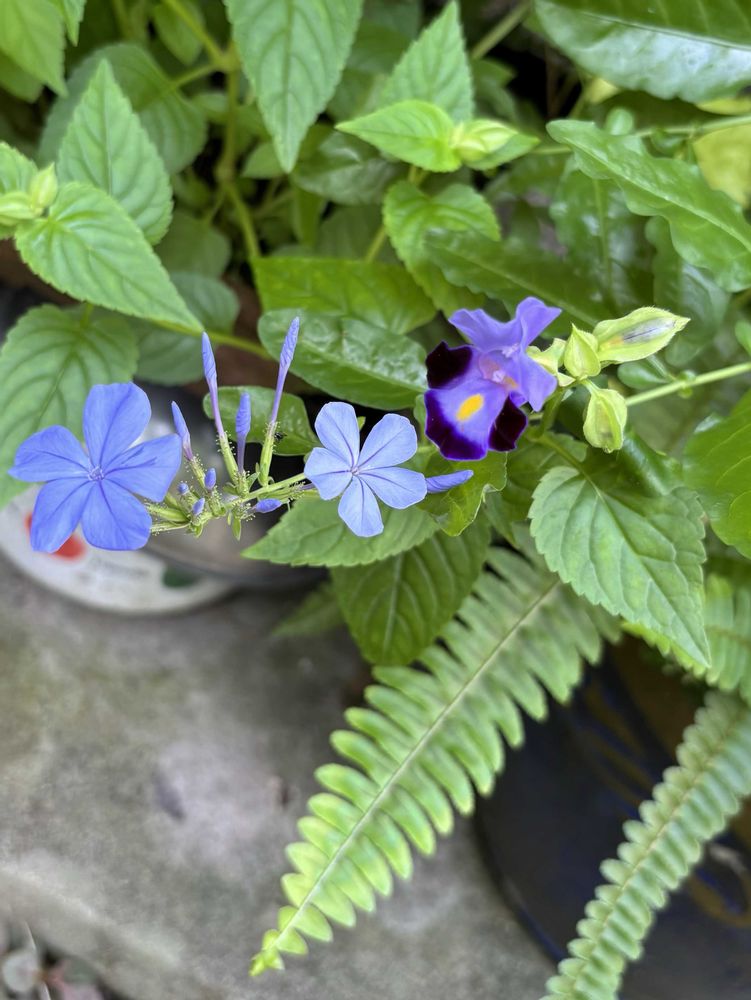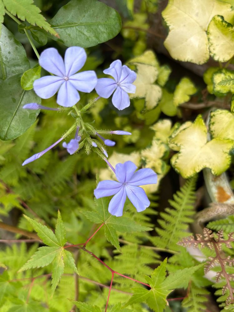 お花は無理かと思ってたけど、ルリマツリが咲いてた〜╰(*´︶`*)╯♡何年もかかってやっと維持してるマメシダさんも、下の方に(^-^)。