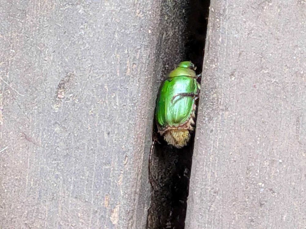 緑のカナブン…我が家には毎日来ますよ。古屋のせいか、網戸とサッシの間から入って来ます。