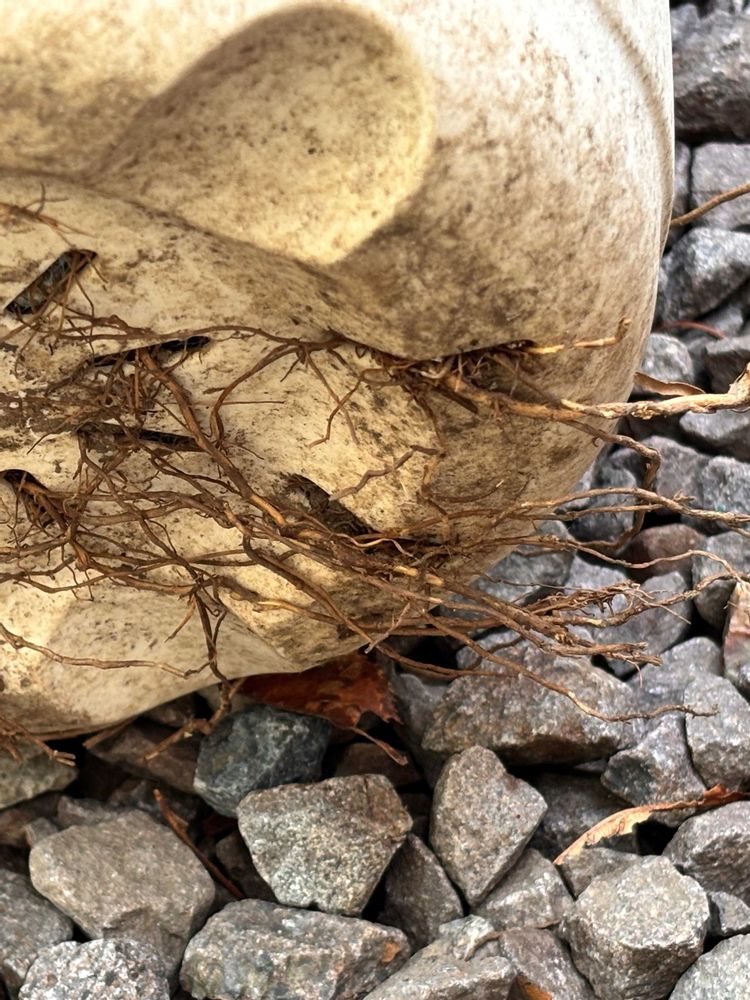 鉢の外に根っこが出て地面に張り付いてしまっていました😂