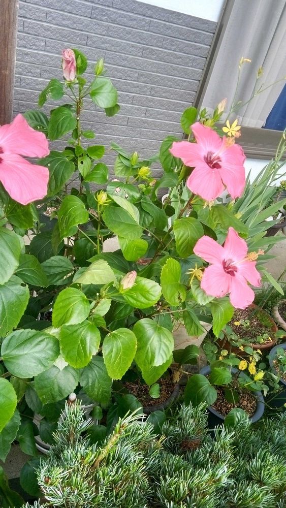 今日のハイビスカス🌺たちの開花の様子は、これら5種類でした🥰古株のハイビスカスは、3輪咲いていました💖💖💖