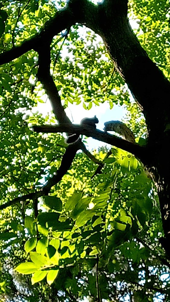 っと見上げたら、リスが食事中🐿