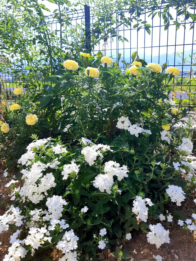 センチュウ対策になればと4株植えてみましたが、それぞれ大きく育って、暑さで花の少ない庭が華やかです✨