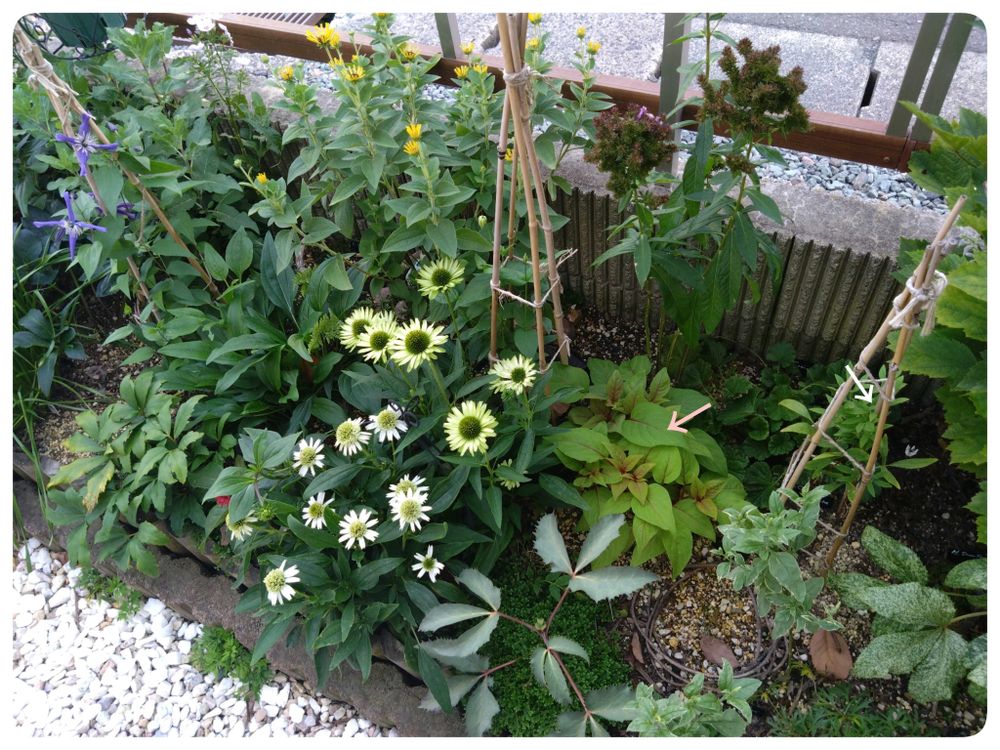 5️⃣の花壇端っこゾーン、春先のお花が中心で、夏のあいだ閑散としちゃったので、アネモネをうつした跡地には、鉢植えのエキナセアをつれてこようかな〜💭♫💭♪