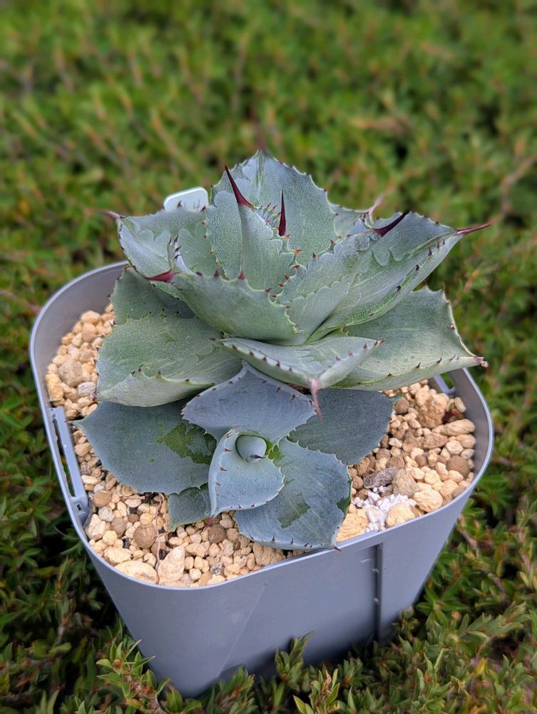 アガベ、我が家にも気まぐれでお迎えしたのがあるけど、放置でも地味に成長してます🤭こんな風にお子ができるのは他の多肉さんと同じね☺️私もいつも鉢を持つとブスッとやられる😓
