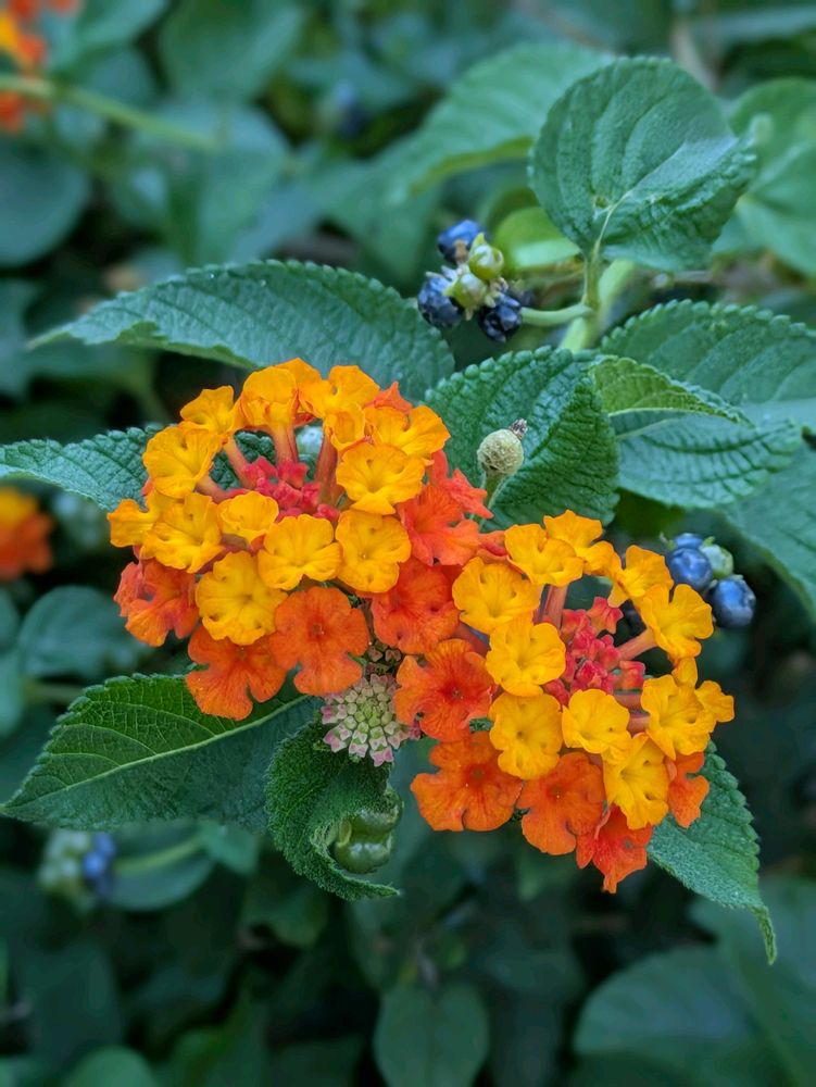 ランタナとハイビスカス、暑くても元気ですね❣️