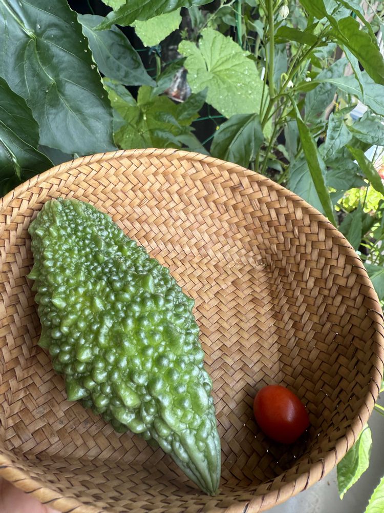 えへへ。あまりに暑くてなのか花は咲けども殆ど実らない。でも南側のベランダもちょこっと涼しげです。