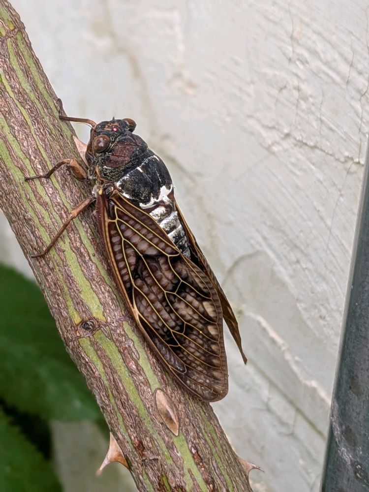 朝 庭で薔薇の木にいた『アブラゼミ』