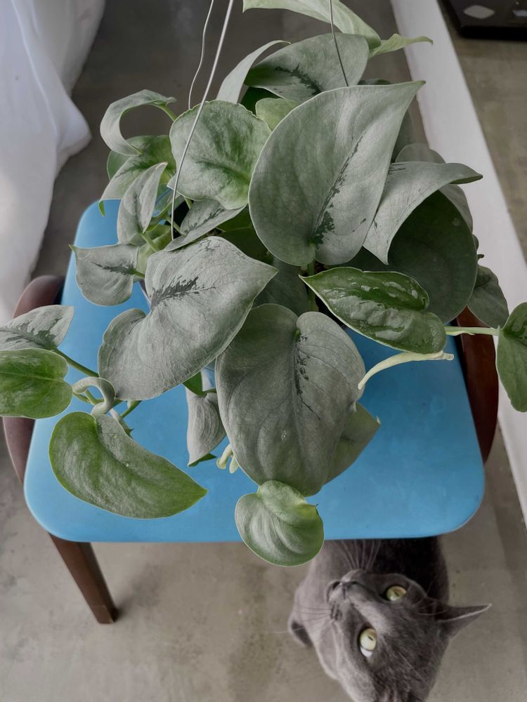 🌿と🪴をメインに🐈⬛🎞️📚🍺 チラチラ登場するグレイの猫は洋猫風ですがワイルドな環境から保護された元野良猫🐈⬛ 葉っぱ齧っちゃうこの子のお陰でハンギングは得意
