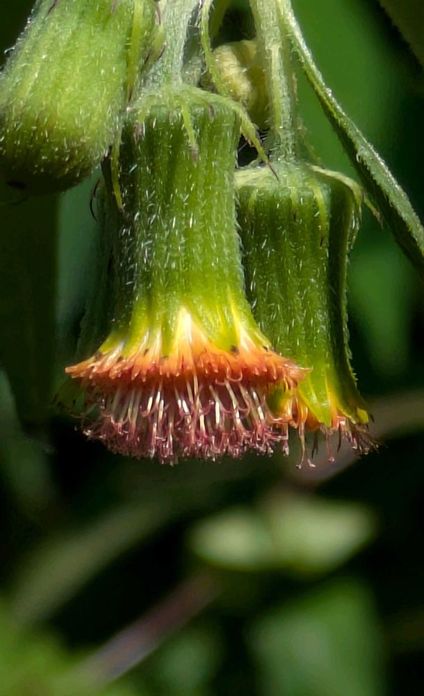 頭花が紅色になるボロギク🔴ダンドボロギクと違って、普通は下向きに咲いている♬