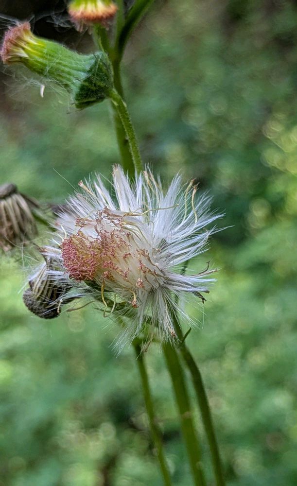 飛んできた綿毛がまとわりついた頭花は、時々横やら上向きになっていたりする(*´`*)
