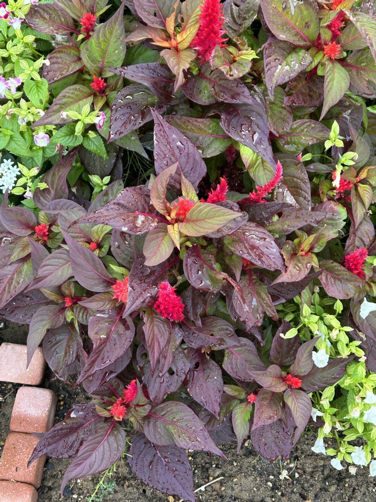 銅葉のケイトウ。だんだん紫蘇の葉に見えてきました。😅
