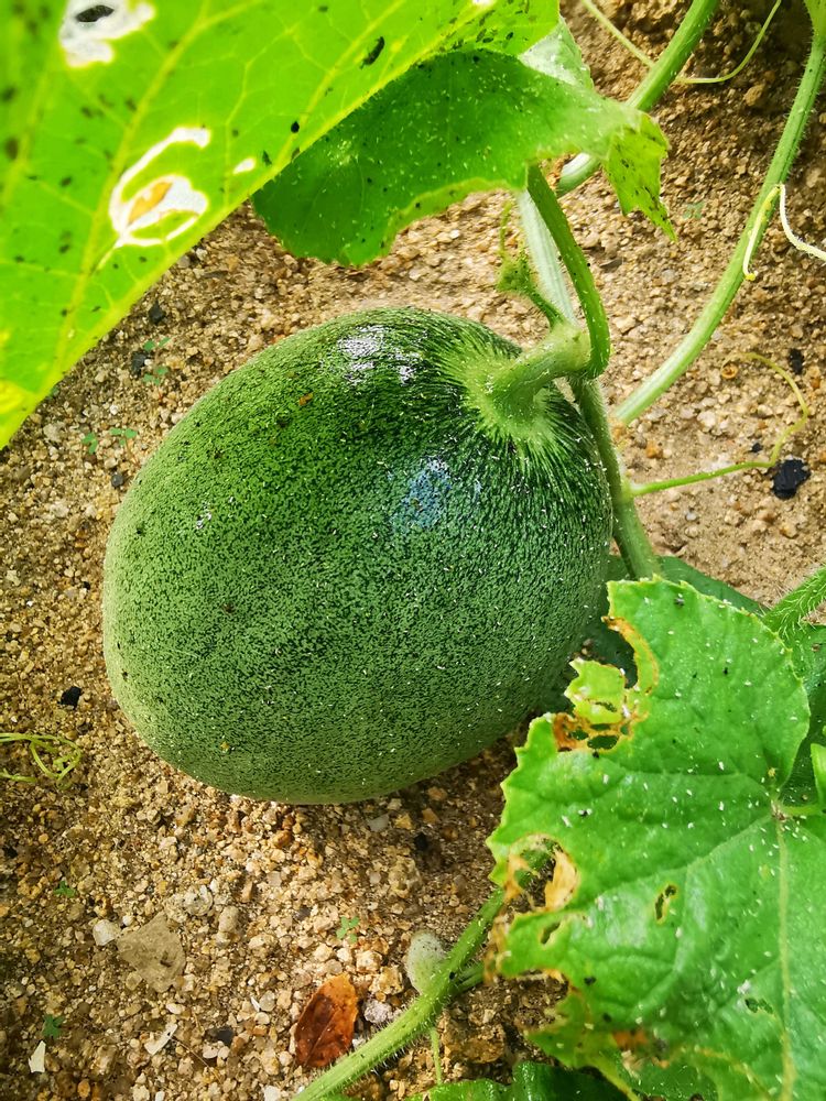 🍈作り能古とは知らないけど、虫に食われるかもしれないし、地についているところは、カボチャみたいに色が変わったりするかもだし😅
