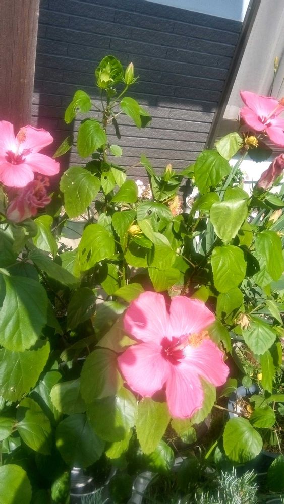 古株のハイビスカスは、今日は3輪花をつけました❤️